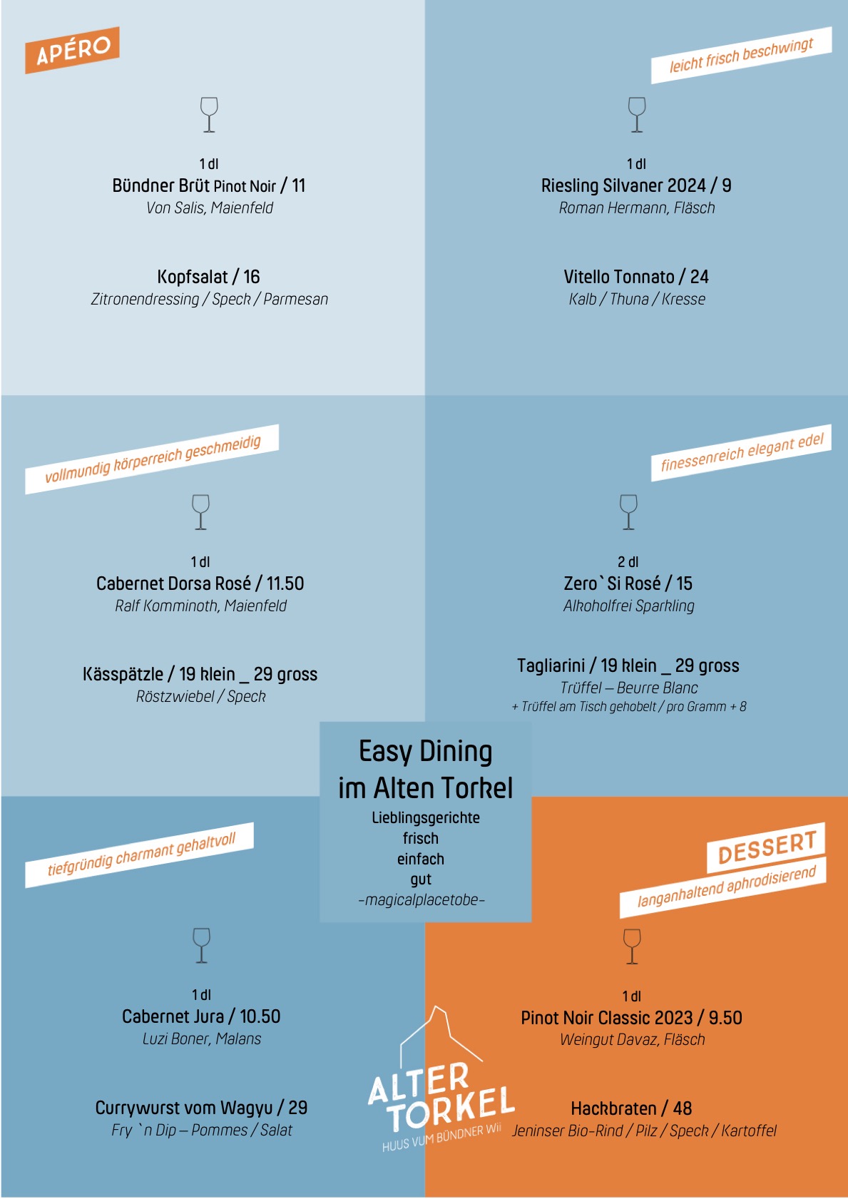 Mit süffigen Tropfen, Raritäten und Überraschungen im Glas, soll sich jeder Weinliebhaber bei uns im »Huus vum Bündner Wii« wie im Schlaraffenland fühlen. Deswegen sind wir viel unterwegs, in den Torkeln der Region, verkosten und sprechen mit Winzern.