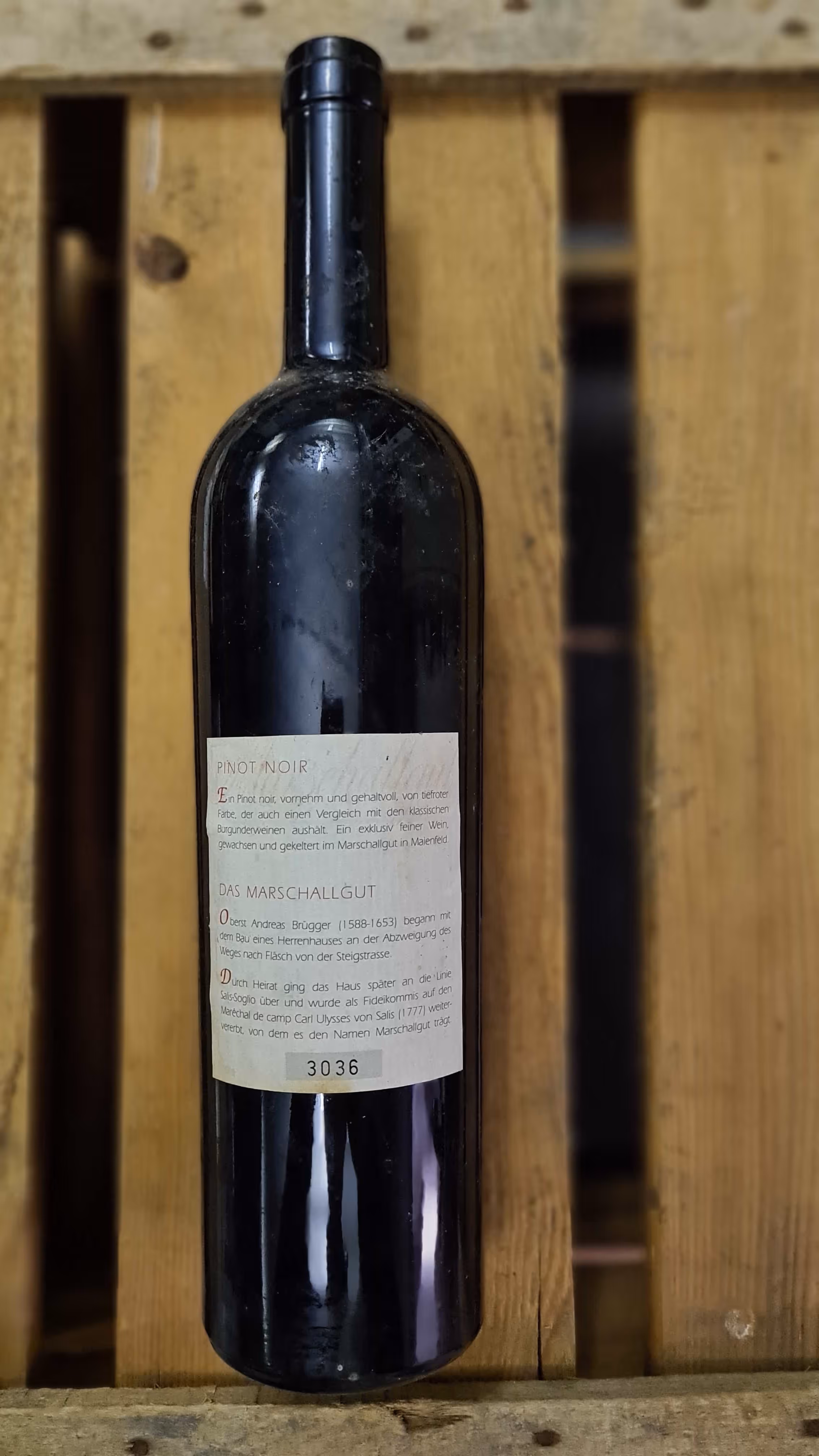 Das Marschallgut liegt in Maienfeld, ein Rebberg von ca. 1,5 Ha. Hier gedeihen die Pinot Noir-Reben für den "Marschallgut" Pinot Noir Reserve Maienfeld. Durch die Steinmauern, die das Weingut umschliessen, entsteht ein einzigartiges Mikroklima. Das lässt die Trauben geschützt vor den Winden in der Bündner Herrschaft sachte reifen. Nur die besten Trauben werden für den Marschallgut Ende Oktober/Anfangs November gelesen.